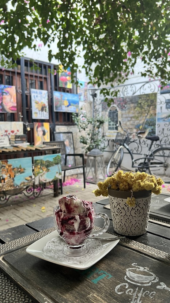 Nart Kültür ve Sanat evi is not your typical cafe. It invites you into a cozy atmosphere filled with enticing aromas of freshly ground coffee and unique handmade beverages. As you step inside, you’re greeted by an eclectic mix of local artworks decorating the walls, creating a vibrant yet intimate setting. It’s the perfect retreat after a long day of exploring Marmaris or a tranquil spot for a leisurely read. This venue welcomes you to sit down, grab a book from their curated selection, and enjoy the simplicity of life with a perfectly brewed cup of coffee or a refreshing lemonade.